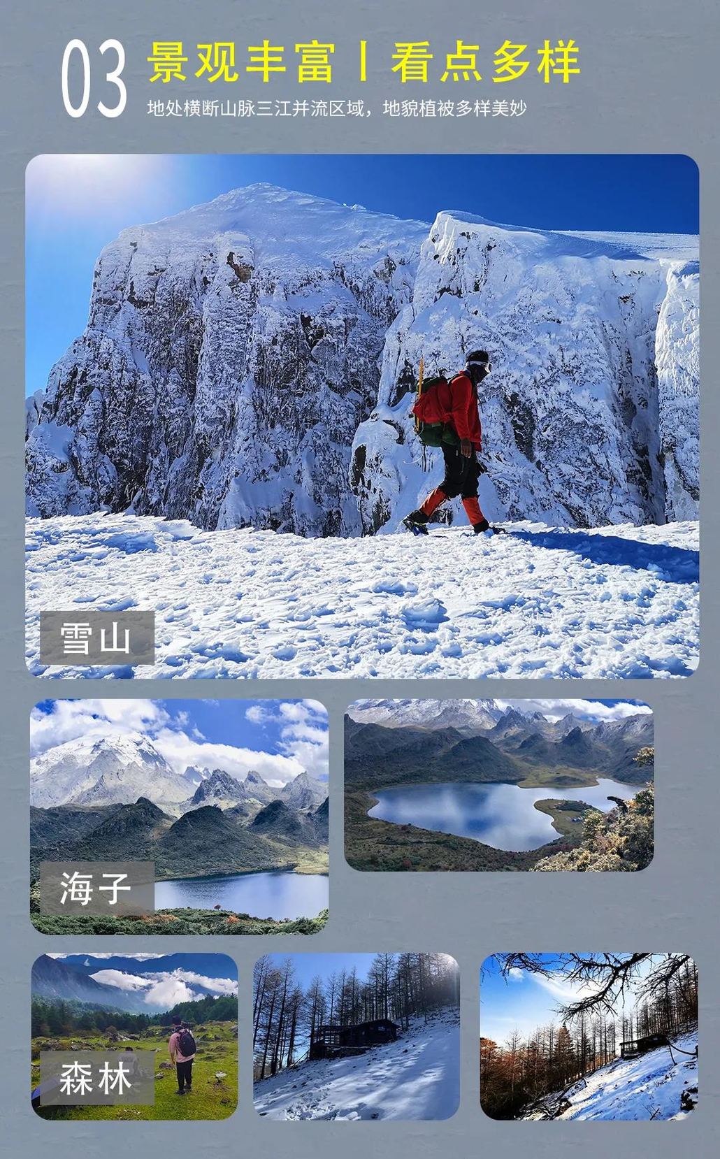 活动介绍![]() ![]() ![]() ![]() ![]() ![]() ![]() ![]() ![]() ![]() 行程安排D0:丽江集合日 从全国各地自行前往丽江,游览高原姑苏丽江古城,晚上入住客栈(次日早晨出发,乘车点为丽江古城北门停车场,可预订附近住宿)。